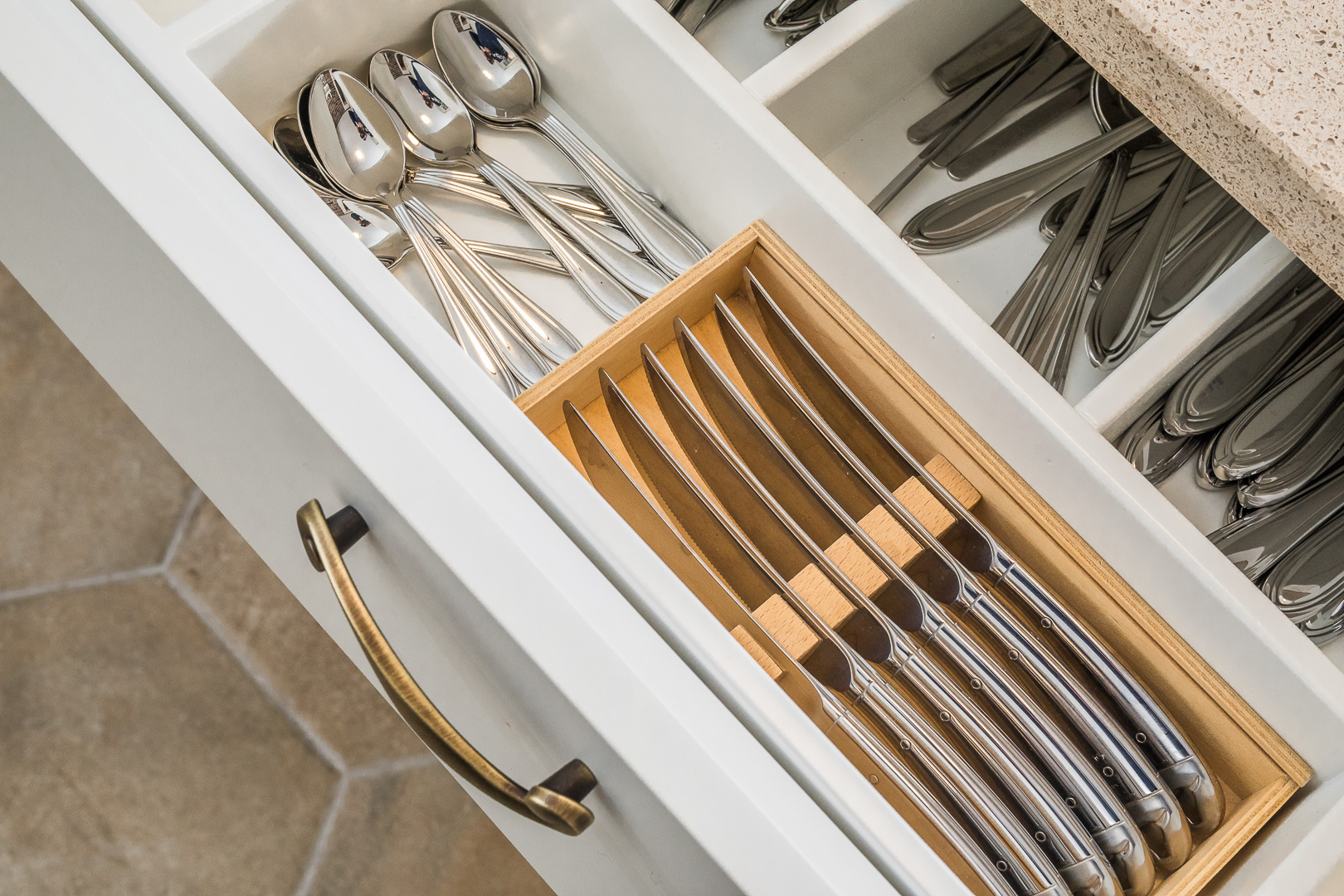 Osim estetike, ova kuhinja obiluje prostorom za pohranu, a tomu u prilog govori i činjenica da su kuhinjski elementi otoka smješteni s obje strane. Osim toga, ovu kuhinju privlačnom i funkcionalnom čini i veća radna površina jer se pri planiranju rasporeda elemenata pazilo da ona bude što manje prekidana.